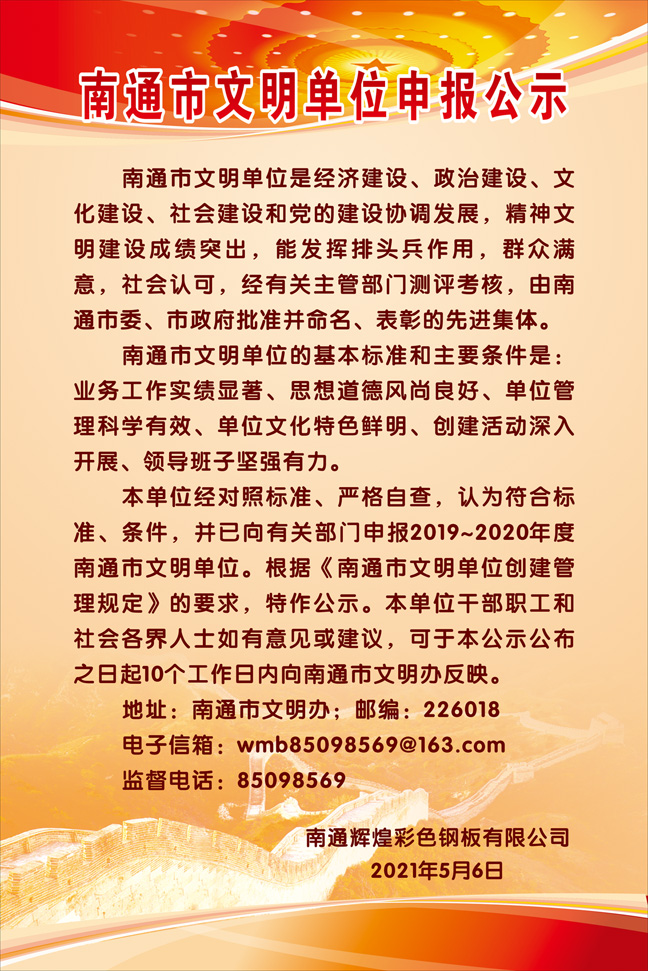 南通市文明單位申報(bào)公示