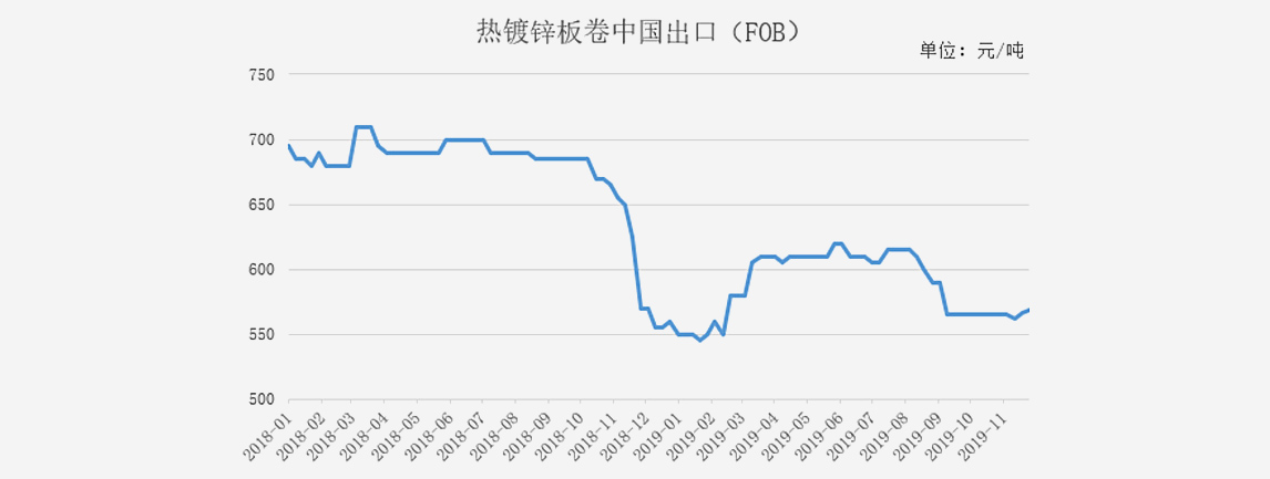 受國(guó)內(nèi)涂鍍板卷價(jià)格相對(duì)回暖影響,出口FOB價(jià)格也呈現(xiàn)上漲的趨勢(shì),截至11月29日,鍍鋅板卷月整體漲幅為4美元/噸,至569美元/噸,相對(duì)而言,近期走勢(shì)一掃四季度以來(lái)相對(duì)低迷態(tài)勢(shì)。