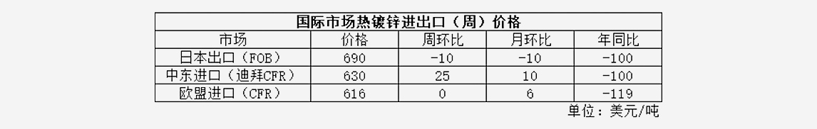 表1:國(guó)際市場(chǎng)熱鍍鋅進(jìn)出口價(jià)格